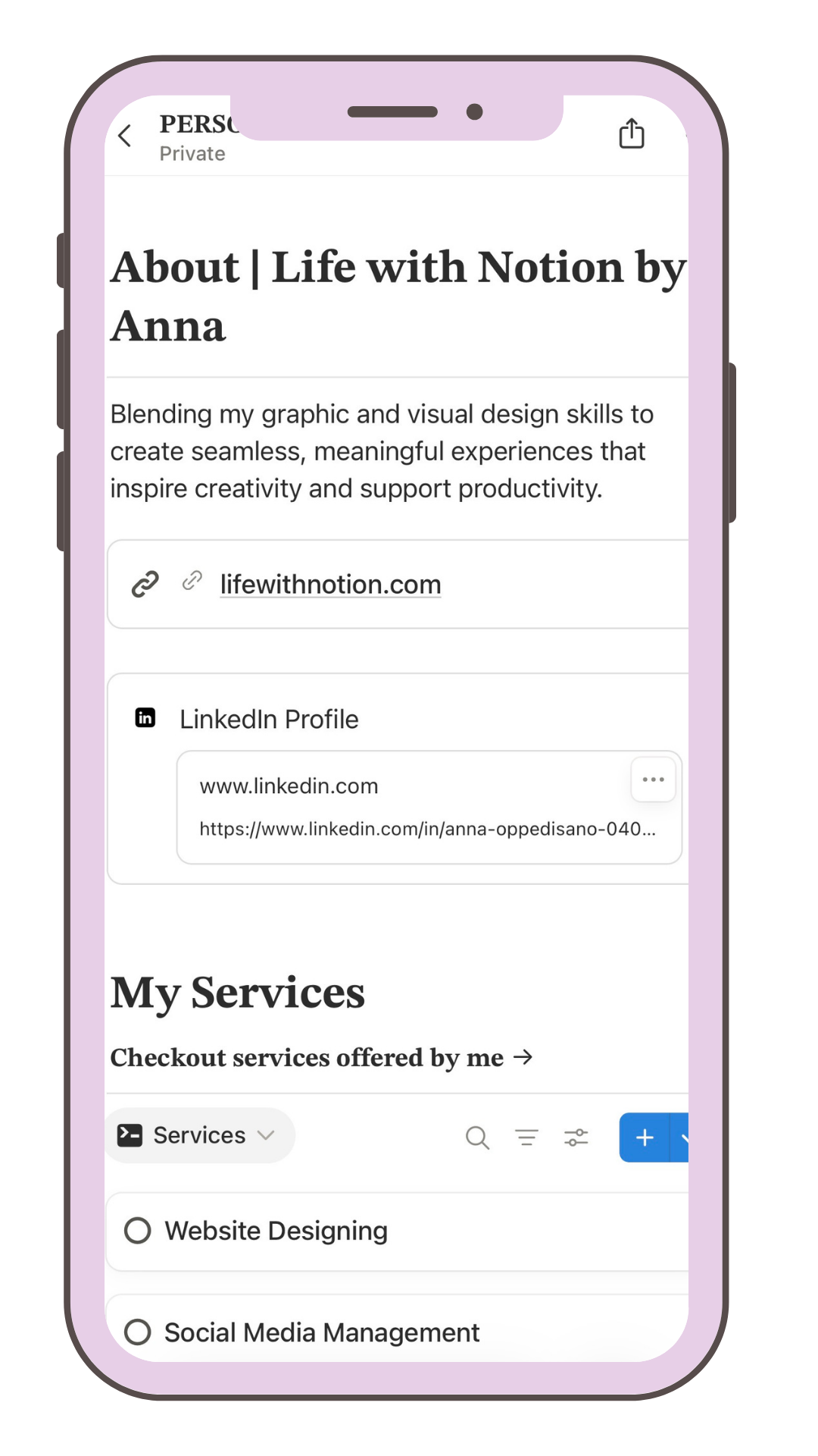 • Platforms that support your goals (LinkedIn, Instagram, Notion, portfolio site, etc.)Â